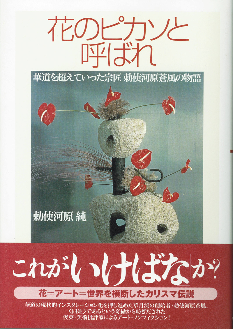 そのなかで一人めきめきと頭角をあらわし、先頭に躍り出たのが草月流の創始者・勅使河原蒼風である。彼は人々が「これが〈生け花〉?」と驚くのを尻目に、華道の現代美術(オブジェ、抽象彫刻、脱ジャンル)化を押しすすめる。「私は何でも生けられる」と叫んで、〈生け花〉に鉄やコンクリートを持ちこむ。はては「人を生けるのだ」と豪語し、大木に裸女たちをからませる。破天荒な家元の、意表を衝く作品の行き着く先は?